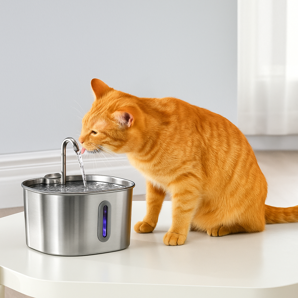Lumei® 2.2L fontánka pre mačky je kompaktné, štýlové riešenie navrhnuté pre zdravie a pohodlie vašej mačky. Vyrobená z kvalitnej nerezovej ocele 304, je bezpečná, odolná, bez BPA a vhodná do umývačky riadu. Tichá cirkulácia vody (<20 dB) a dizajn v tvare kohútika prirodzene lákajú mačku k pitiu, čo podporuje hydratáciu a chráni pred problémami s obličkami a močovými cestami.